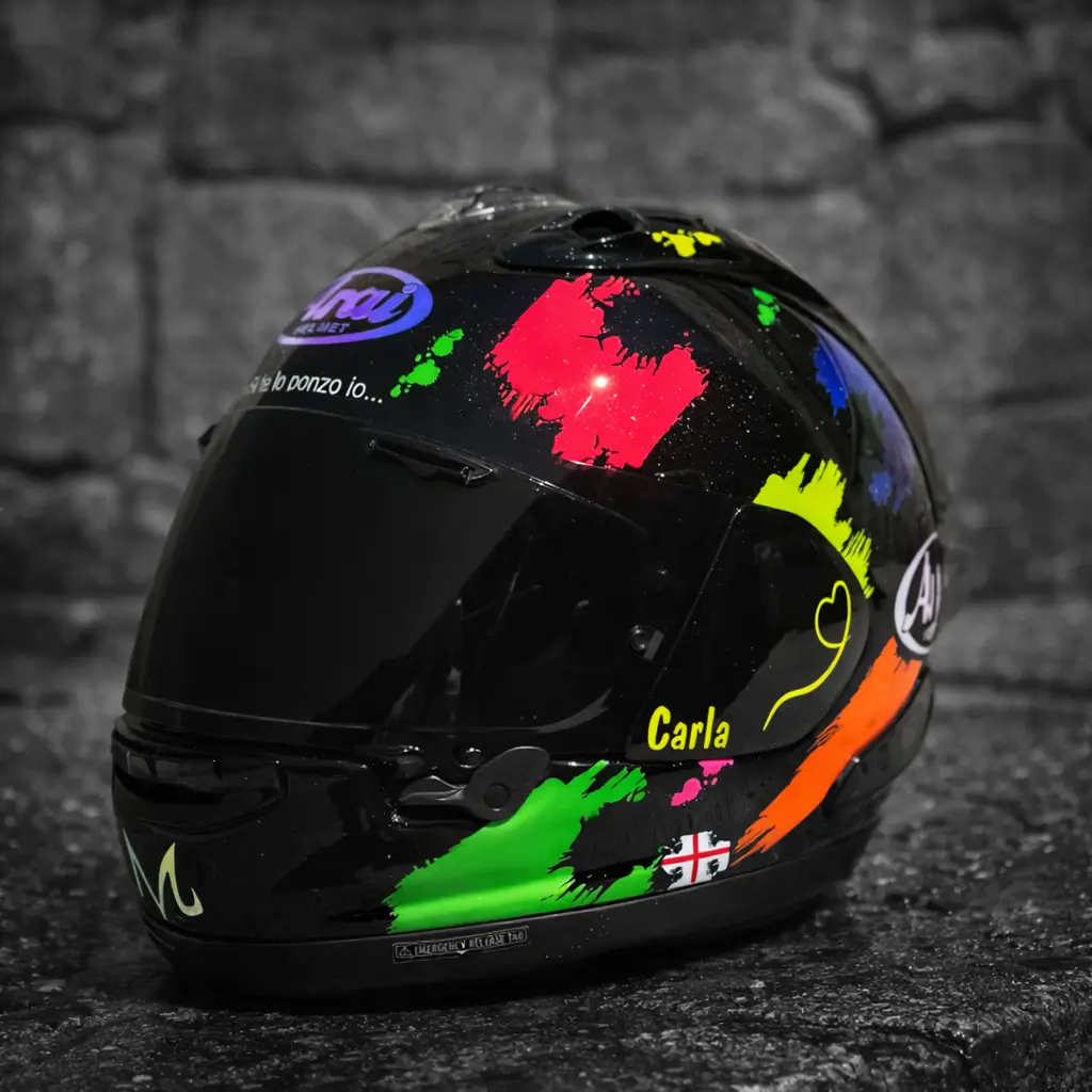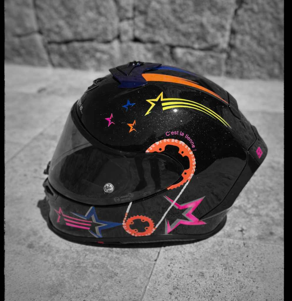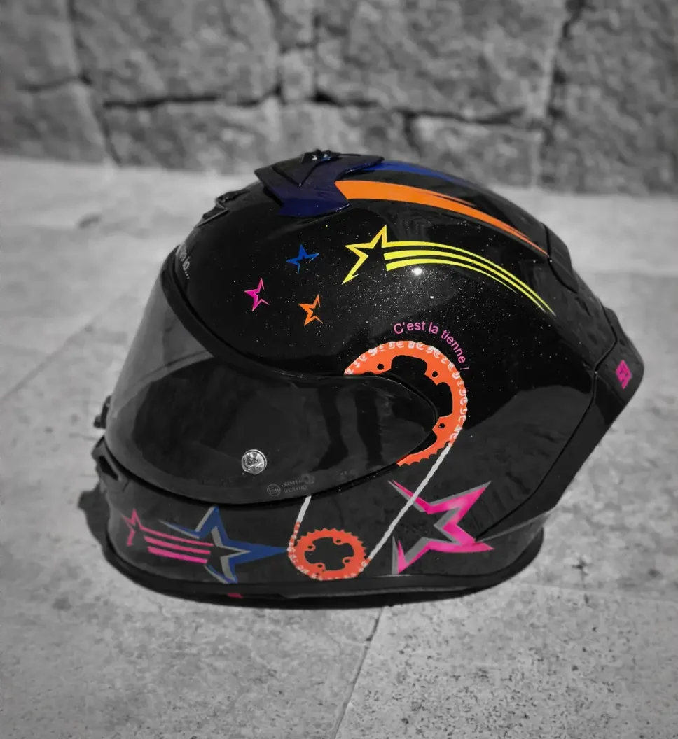 Vous avez déjà un design, une idée précise, ou un fichier vectorisé ? HelmetCorse prend en charge l’intégralité de la réalisation technique. Préparation professionnelle des surfaces, application des couches de fond, peinture au pistolet, vernis de finition — avec les mêmes exigences que sur nos créations originales.