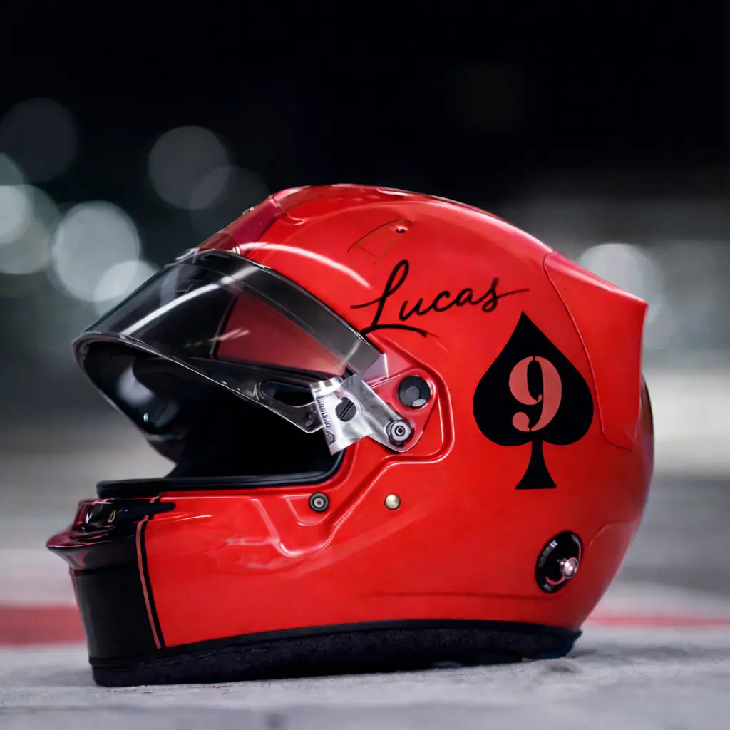 Numéro de pilote, nom, réseaux sociaux, sponsors ou éléments graphiques : tout est conçu pour s’intégrer avec précision à votre casque ou votre équipement.